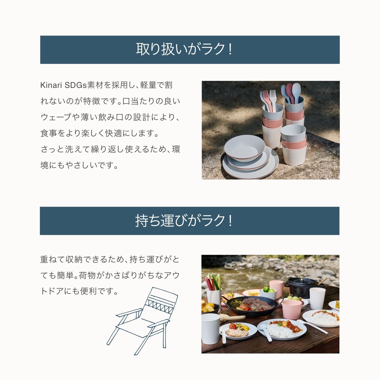 SDGsに配慮した日本製のテーブルウェアで、パナソニック製の原料セルロースファイバー成形材料 (kinari)の素材を採用しています。